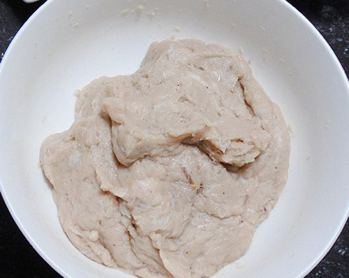 Bước 2: Cho cá vào máy xay khô xay nhuyễn. Để chả cá được nhuyễn bạn dùng tay đập đập hoặc đánh nhuyễn cho chả cá mềm.